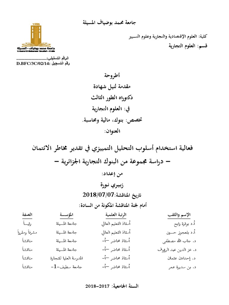 فعالية استخدام أسلوب التحليل التمييزي في تقدير مخاطر الائتما