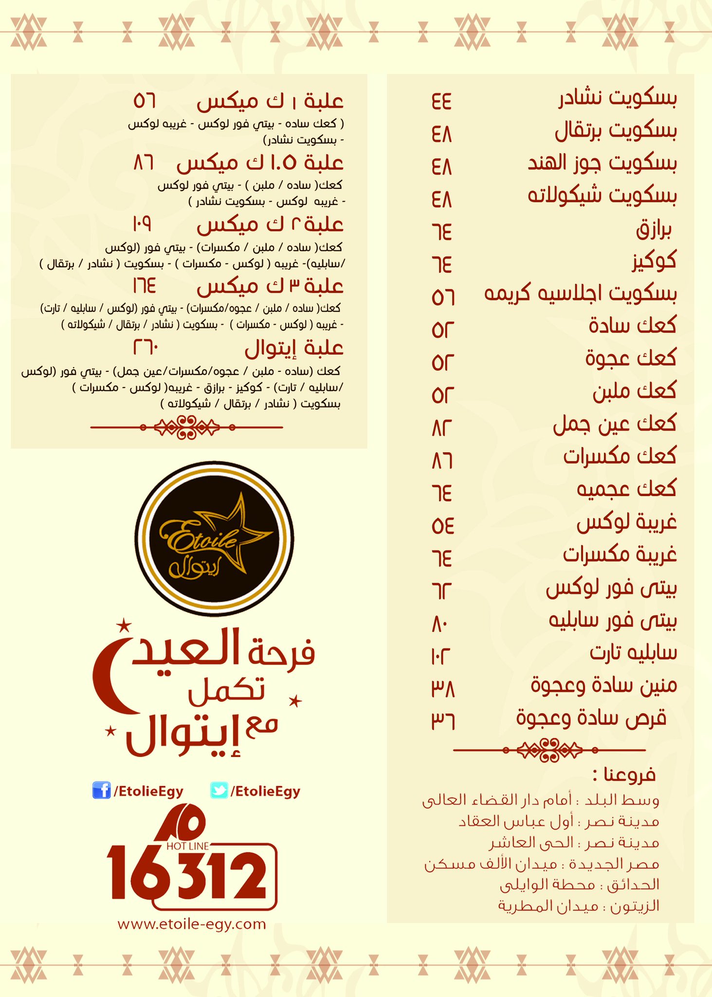 منيو وأسعار مطاعم ايتوال. Etoile حلواني ايتوال cairo egypt.