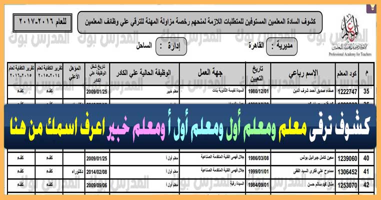 كشوف ترقي معلم ومعلم أول ومعلم أول أ ومعلم خبير اعرف اسمك من هنا