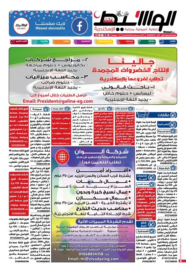 وظائف الوسيط اليوم 10 4 2020 نسخة الاسكندرية