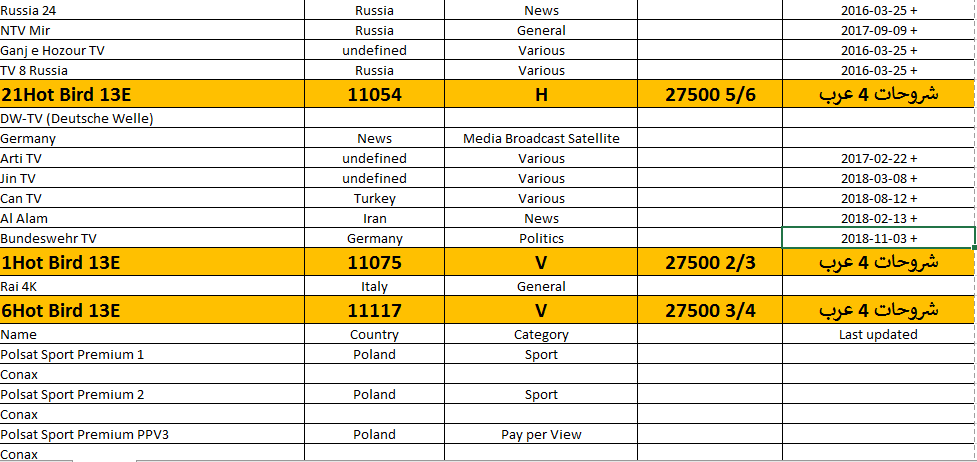 تحديث ترددات قنوات هوت بيرد Hotbird شهر نوفمبر 2018 جميع القنوات المشفرة والمفتوحة العديد يبجث بشكل يومي عن تردد قنوات هوت Cinemax Urban Music Eastern Europe
