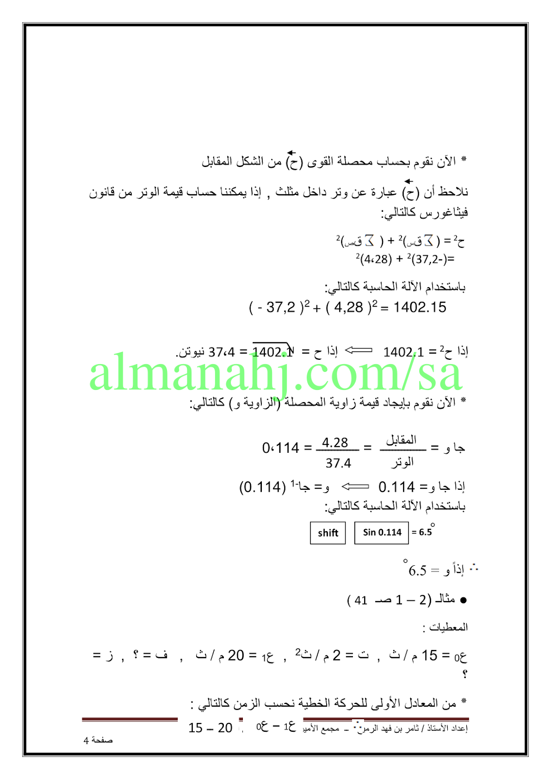 حل تمارين مادة الفيزياء سنة أولى ثانوي مدرسة العروبة الثانويه So4 Algm3a Facebook
