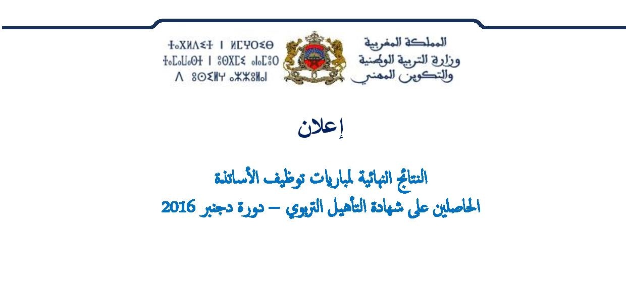 عاجل النتائج النهائية لمباريات توظيف الأساتذة الحاصلين على شهادة التأهيل التربوي دورة دجنبر 2016