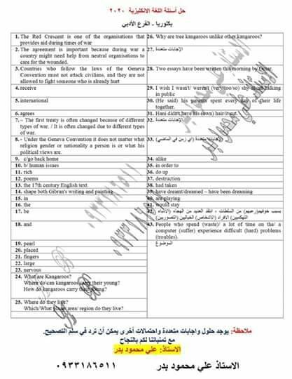 English شاومينج الإجابة تسريب امتحان الانجليزي للثانوية العامة 2020 حل امتحان الانجليزي كامل إقرأ نيوز