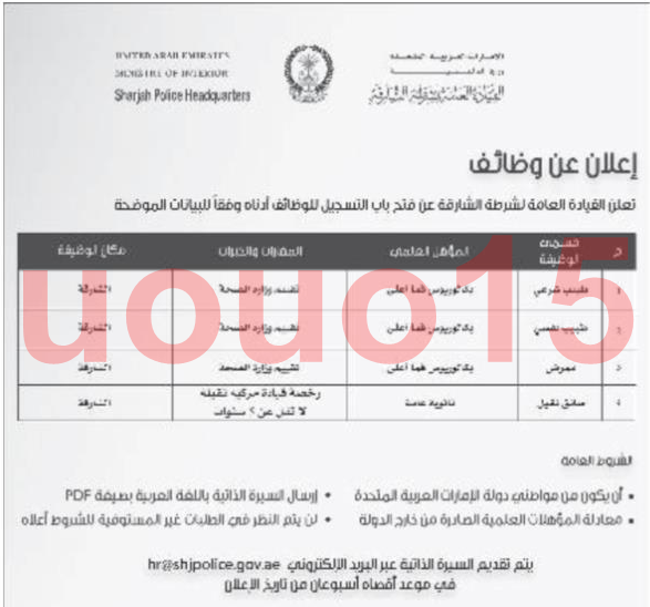 وظائف شرطة الشارقة 2019 وظائف شاغرة فى الامارات