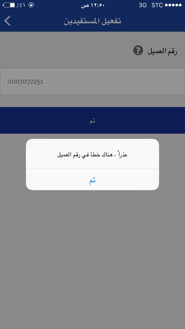 عبدالعزيز الفالح على تويتر سلام عليكم لو سمحت انا ادخل رقم العميل بأمان الراجحي ويطلع لي خطأ ماهو الحل