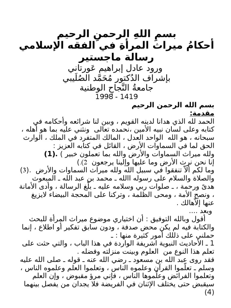 احكام ميراث المراة في الفقه الإسلامي