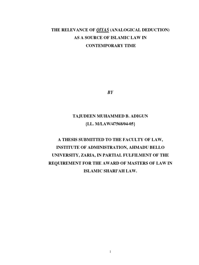 By analogy this prohibition is extended to other transactions and activities such as agricultural work and administration. Identification of a clear known thing or action that might bear a resemblance to. Qiyaas is a term used when determining the root cause of the process to do ijtehaad. Qiyas is not allowed.